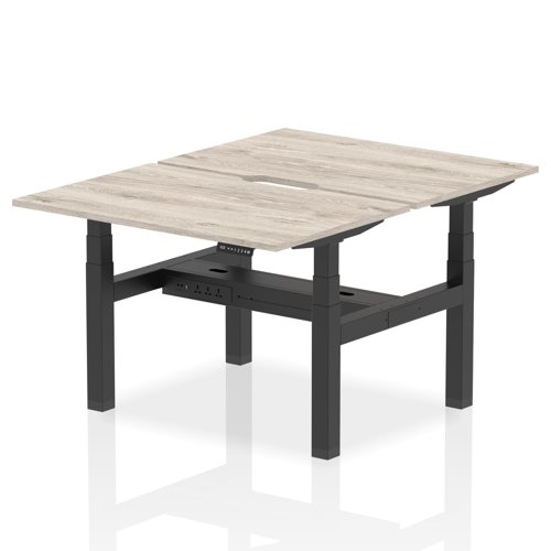 Air Back-to-Back 1200 x 800mm Height Adjustable 2 Person Office Bench Desk Grey Oak Top with Scalloped Edge Black Frame
