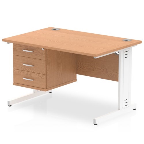 Impulse 1200 x 800mm Straight Desk Oak Top White Cable Managed Leg with 1 x 3 Drawer Fixed Pedestal