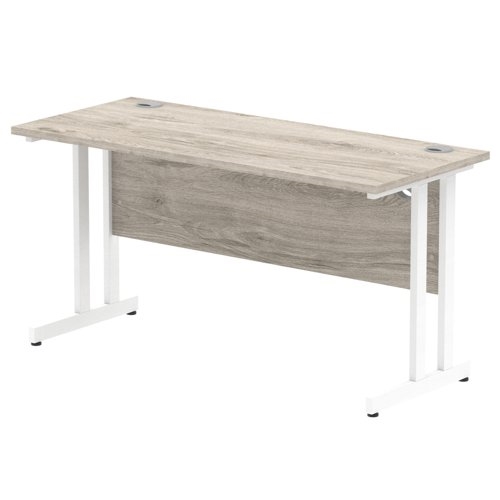 Impulse 1400 x 600mm Straight Desk Grey Oak Top White Cantilever Leg