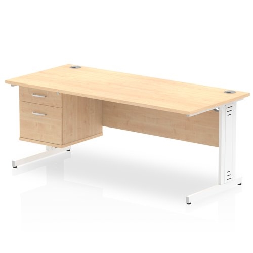 Impulse 1800 x 800mm Straight Desk Maple Top White Cable Managed Leg 1 x 2 Drawer Fixed Pedestal