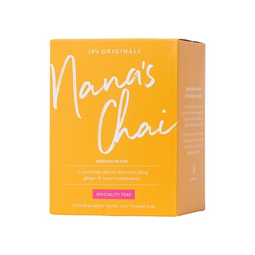 "A warming spiced chai with fiery ginger & sweet cardamom.Chai, meaning 'tea' in Hindi, is thought to have roots that go back 5,000 years to a time when Indian Emperors would sip on an ayurvedic concoction of spices to promote energy and wellbeing. Fast forward to modern-day and the representation of chai has shifted to what is now a globally recognised beverage. The tradition of chai is complex, with each household or teashop having their own family recipe. From being had out of a sikora, to a glass cup, to a saucer, made sweeter, more gingery, or milkier, no two chais are the same. Whether sipped or slurped, chai ultimately invokes the same feeling of comfort, energy and warmth.In honour of my Nana, the great JP.This family recipe for warming ginger and cardamom chai is the taste of my childhood and a favourite to this day passed from JP to me and now to you."